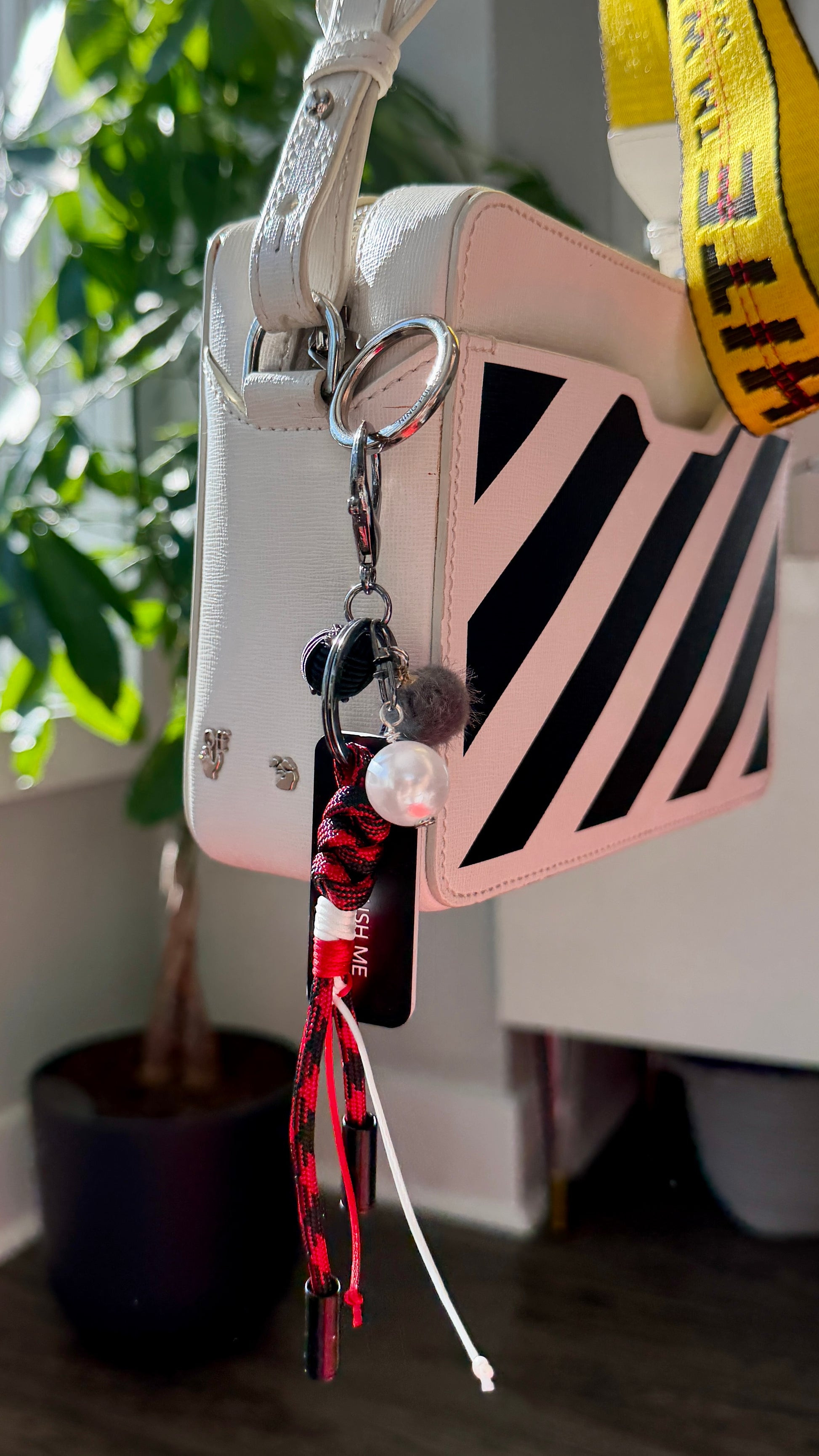 BLack silk knot / grey micro pom / XL pearl