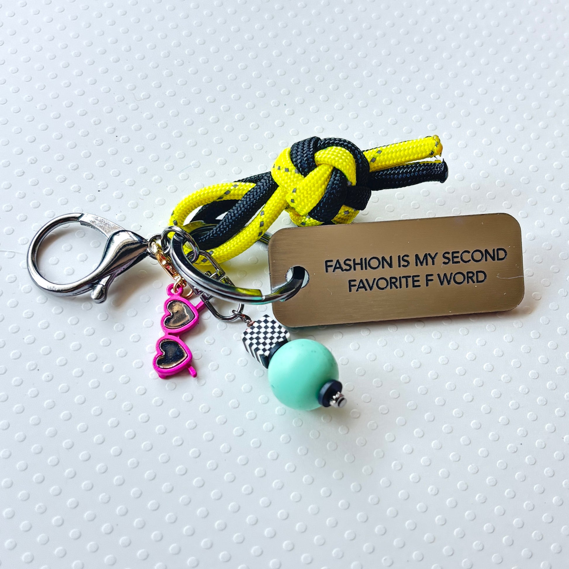 neon yellow and black paracord knot